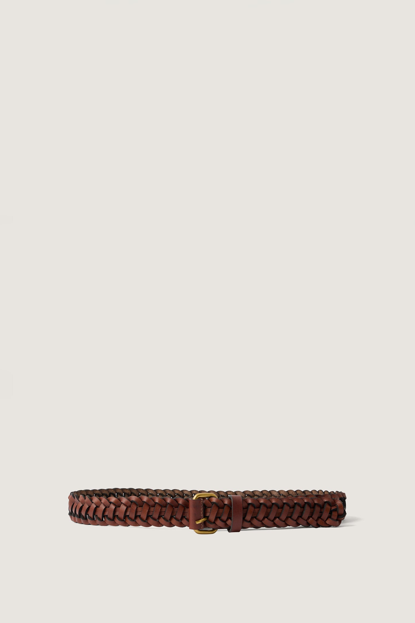 AGORA es un cinturón de cuero trenzado ajustable (sin muesca definida). Ideal para pasar por las trabillas de unos pantalones, o bien para ajustar una chaqueta, un vestido o un jersey grueso y así darle forma a la silueta.