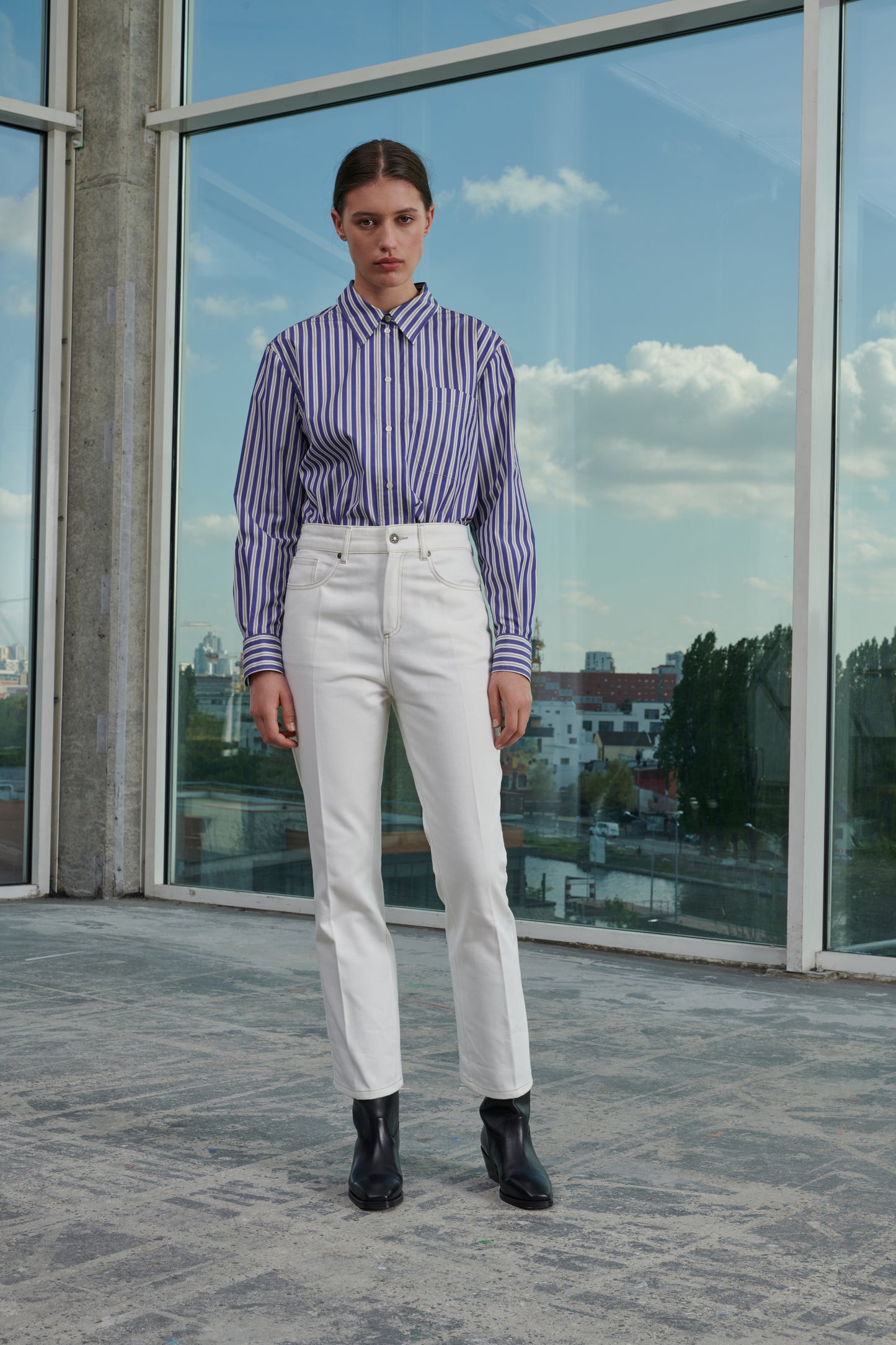 Vaquero blanco de corte acampanado de algódon biológico
